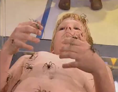 Něco pro pavouky. Tom Buchanan z Austrálie představil rekord pro největší počet rojících pavouků na člověka tělo v celém příběhu. Téměř minutu vydržel na sobě nekontrolovatelné 125 pavouků Golden Orb.