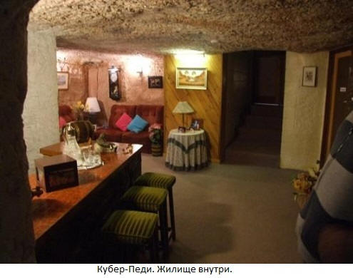 Ti, kteří dorazili velmi rychle, si uvědomili, že život v podzemí je hodně pohodlnější než na povrchu. Horníci se začali vybavovat bydlení přímo v dolech, a žil tam lze říci i pohodlně. Vzniklo tedy město Coober Pedy, které je v jazyce místního domorodce znamená „díra bílého muže“.