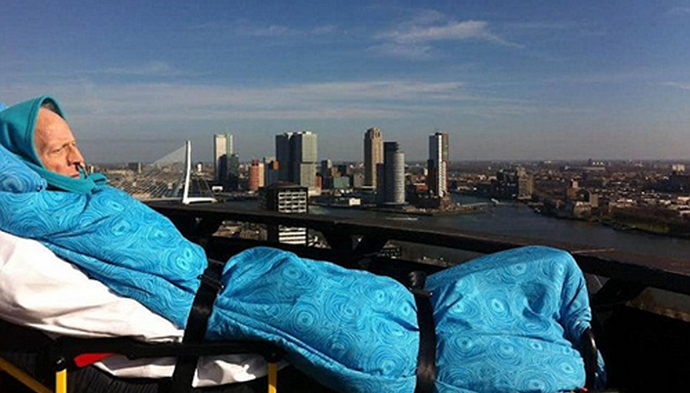 A tento muž si dlouho užil sen, aby se vyšplhal na vyhlídkovou plošinu platforma věže Euromast a obdivovat její závratě výšky na rodném městě Rotterdamu, ale z nějakého důvodu nemohl život to naplnit. A tak se to stalo …