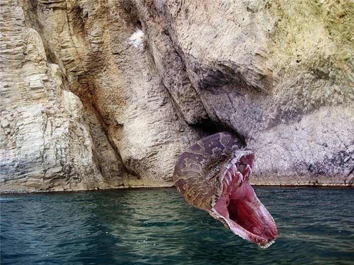Podle esoteriků, obra obojživelník. Opakovaně se s ním setkali místní rybáři a rybáři dokonce pokřtil monstrum jménem Blackie. Ashore často našel roztrhaná těla delfínů se stopami obrovských zubů. Mořský had pravidelně hází zbytky ze svého jídla na pobřeží a někdy děsí rybáře, kteří jdou na moře v člunech.