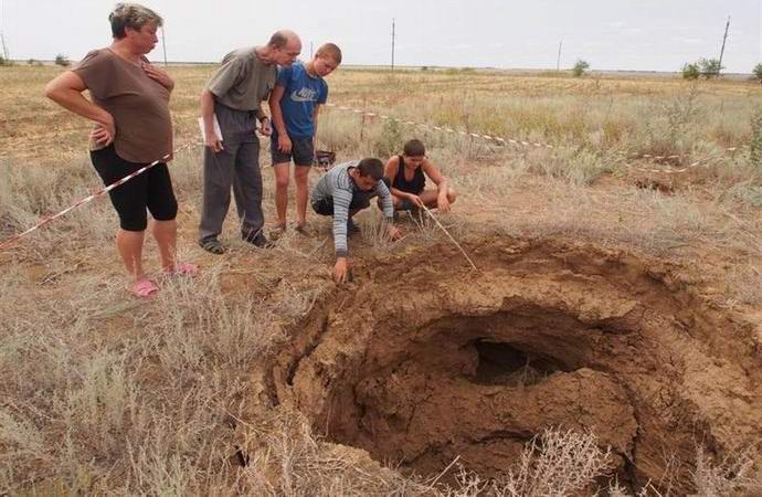 V loňském roce byla podobná díra nalezena v oblasti Volgogradu, jmenovitě pod vesnicí Prudovy v okrese Svetloyarsky. Vesničané dokonce zavolali policii, ale policisté ji nenašli Nehledali korpus delicti a zloděje země.
