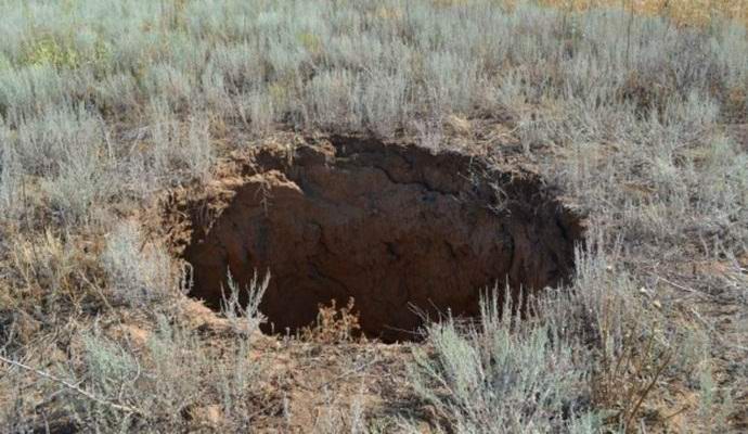 Údajní cizí lupiči opustili své stopy Kazachstán. V posledních několika desetiletích to bylo objevil mnoho válcových vybrání. Takže v roce 1990 v obci Malinovka (Tselinogradská oblast) v jednom z nich díry celý traktor selhal. Průměr zemní díry byl také pět metrů, ze kterých můžeme dospět k závěru, že sem a tam stejní útočníci pracovali.