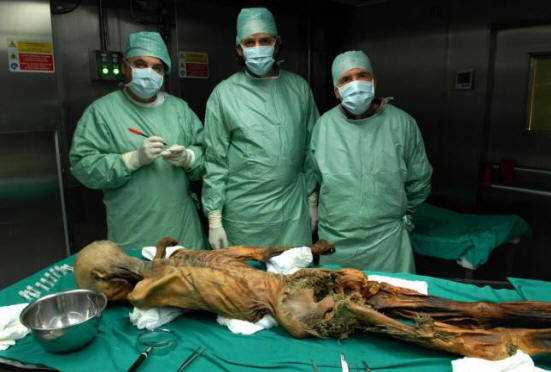 Fotografie z otevřených zdrojů Nyní je Ice Ice uložen v speciálně vybudované muzeum v Bolzanu. Pro lepší uchování v chladicí komora je neustále udržována na teplotě -6 ° C a vlhkost 99%. Mumie je vyjmuta každý měsíc i po opatrnosti inspekce se stříkají destilovanou vodou, která mrzne a vytváří tenkou ochrannou kůru ledu. PROČ BYLO OTZI ZEMĚNO? Vědci se pokusili zjistit příčinu smrti ledovce v roce 2005 Červen 2001 Mumie byla rozmrazena a během důkladného vyšetření udělal úžasný nález. Pod levým ramenem bylo dvou centimetrový fragment šípu, který pronikl do těla o 5 centimetrů a přilepená kolem plic. Šipka poškodila krevní cévy a nervy. Po po zranění Otzi žil několik hodin a zemřel bolestivě smrt. Rozhodl se, že vrah byl na území protivníkem který Otzi napadl, vědci považovali hádanku za vyřešenou a uklidnil se. Mezitím archeolog Johan Reinhard z National geografická společnost, známá nálezy mumifikované děti v Andách, které byly obětovány Inky, navrhly velmi zajímavá, byť kontroverzní teorie Otziho smrti. Reinhard věří co Otzi obětoval bohům, kteří obývali zasněžené vrcholy Alpy. Podle amerického antropologa, místo, kde byl nalezen Otzi je nejvhodnější pro rituální oběť. Místo vraždy není jediným argumentem, který citoval Johan Reinhard na obranu své teorie. Upozornil na to Icemanovy předměty byly úhledně rozloženy vedle mrtvola, která nějak neodpovídá náhlé verzi násilná smrt. Kromě toho 12 ze 14 v jeho chvění šípů nemělo hrotové hroty, a proto ne vhodné pro lov.