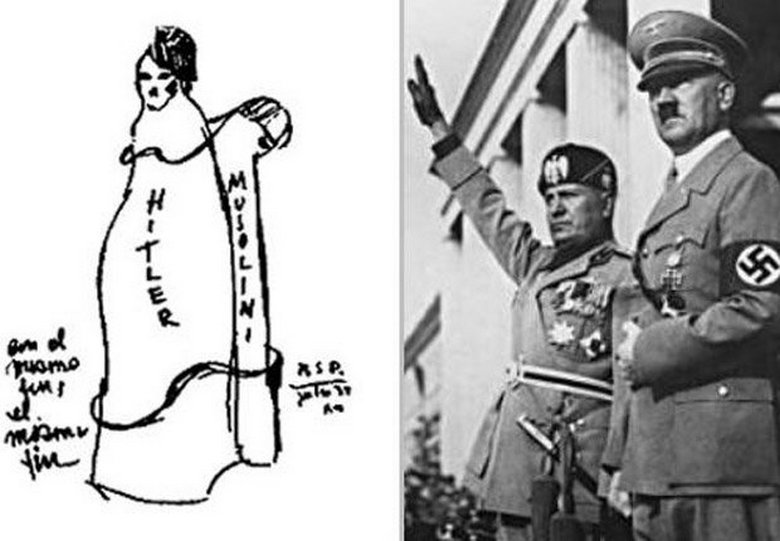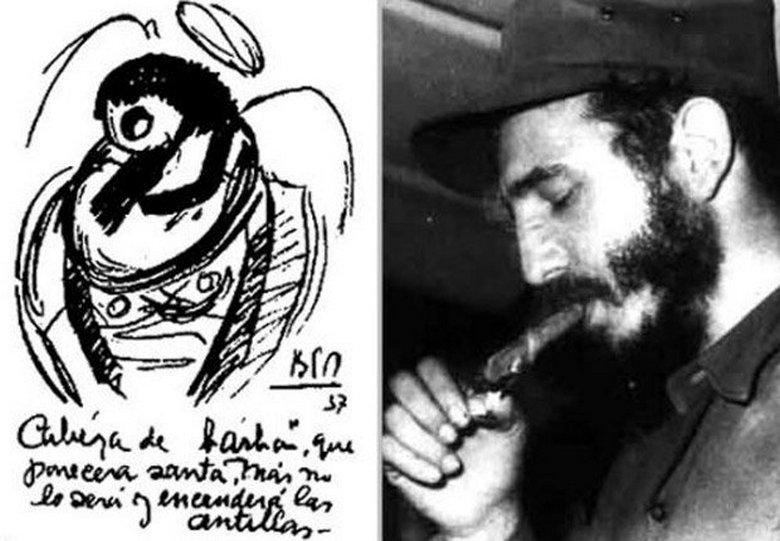 Ale tady je kresba Benjamina z roku 1937 a na něm je muž s plnovousem, který podle náčrtu zapálí Antily ostrovy. Kuba vstupuje do tohoto souostroví, ale do Fidela Castra v té době to bylo jen 11 let.