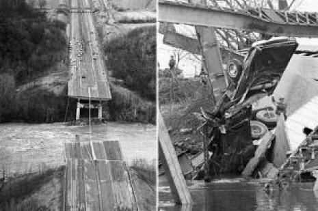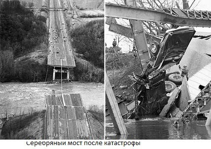 Jak se ukázalo, ve strukturách byly malé praskliny most již v roce 1928, ale technologie k jejich identifikaci přítomnost pak prostě neexistovala. Navíc, po dobu 39 let mnohonásobně zvýšená zatížení výrazně převyšující promítnuto. Hmotnost „rodinného“ automobilu se zvýšila z 680 kg (1928) na 1,8 tun (1967), naložený vůz vytáhl 67. místo za 27 tun.