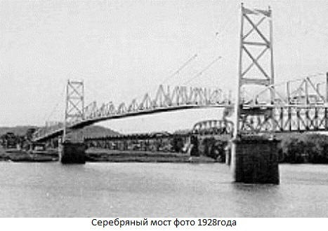 Spojování měst Point Pleasant a Gallipolis (a zároveň dvou Stát – Západní Virginie a Ohio) Most byl postaven v roce 1928. Tři rozpětí: centrální 213 metrů a dva 115 metrů každý. Tradiční drátěná lana byla nahrazena přívěsky na pruty s oky. Most opravdu visel nad vodou a způsoboval obdiv. Ve výzdobě hliník byl použit, a na slunci most prostě jiskřil, pro který obyvatelé města a přezdívaný „Stříbro“. Jméno bylo pevné a stalo se oficiální. 39 let sloužilo jako most k lidem. V roce 1967 on zhroutil se.