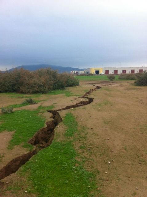 Oddělení mimořádných situací požádalo o naléhavou přítomnost technický personál Španělského geologického a těžebního ústavu pobočky Murcie, jednotky ministerstva hospodářství a Konkurenceschopnost k identifikaci příčin obrovských praskliny na zemi, které se objevily po nedávných silných deštích v průmyslovém parku Saladar v Totaně (GoogleMap).