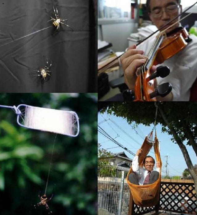 Nástroj s novými řetězci, podle odborníků, prokázal „měkký a hluboký zabarvení“ zvuku. Některé houslisté dokonce začali mluvit o „nové hudbě“. Spider Inventor Řetězce – Shigeyoshi Osaki od Medical Univerzita Nara (Nara Medical University). Podle informací PhysOrg.com, tento vědec, specialista na polymerní chemii, 35 let pracuje na studiu hedvábí pavouka a technologie velkého měřítka získávání silných vláken z toho. Podobné přírodní vlákna může být potenciálně zajímavým materiálem pro zbroj nebo chirurgické stehy. Zdá se však, že na to nikdo jiný nepomyslel vyrábět struny pro hudební nástroje z pavučin. Osaka a hrál na housle sám, rozhodl se tuto mezeru zaplnit.