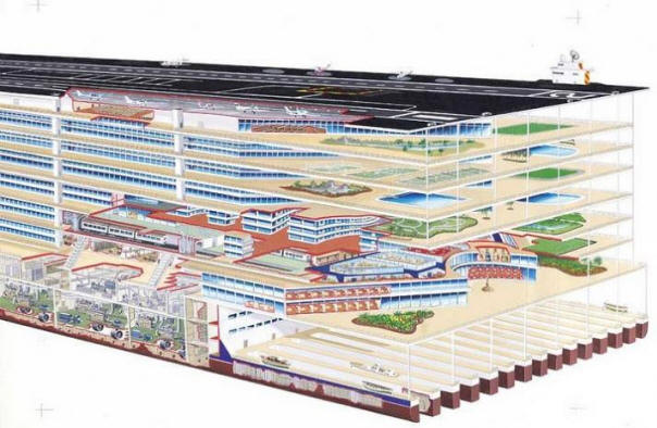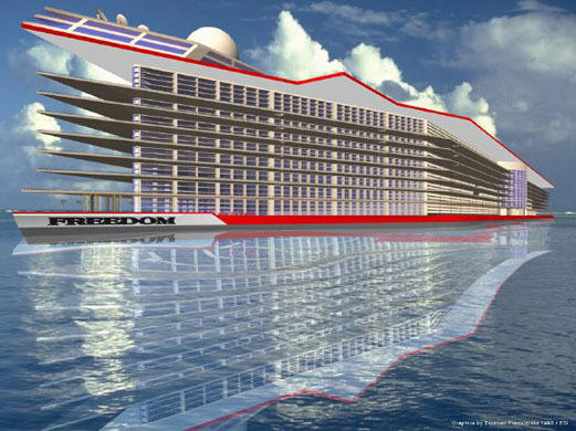 Při ovládnutí země člověk ovládal současně i vodu. Lodě se staly stále více námořními plavbami – všechny déle. Do 21. století dosáhlo pohodlí na osobních lodích dříve nepředstavitelné výšky. Dříve Deadly Marine Cestování se změnilo na příjemnou zábavu. Právě odešel jen jeden krok, aby se loď stala dopravním prostředkem trvalý pobyt. A zdá se, že tento krok již byl učiněn. Brzy na na oceánu se objeví obrovská loď bude žít. Nápad patří Normanu Nixonovi, majiteli společnosti. “Inženýrská řešení”. Loď byla původně plánována jako obří výletní loď, ale již je v procesu vývoje projektu Nixon dostal nápad změnit koncept a obrátit se loď v plovoucím městě. Nazval ambiciózní projekt „Svobodná loď“ (Svobodná loď). Realizovat plán byl Společnost Freedom Ship International byla založena. Rozměry lodi jsou úžasné. Délka – více než kilometr (1307 m), šířka – 300 metrů, celková hmotnost – 3 miliony tun, výtlak – 2,7 milionu tun. 25 paluby na kterém bude vše pro život, práci a odpočinek: restaurace a bary, počítačové místnosti a kasina, stadiony a bazény, kurty a kina. Ve městě bude současně žít 100 000 lidí, z toho 80 000 cestujících a 20 000 zaměstnanců údržby.