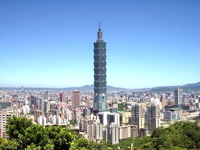 V tchajwanském hlavním městě je mrakodrap stejného jména s výškou půl kilometru, což se ve své neobvyklé podobě podobá mocnému stonek bambusu.