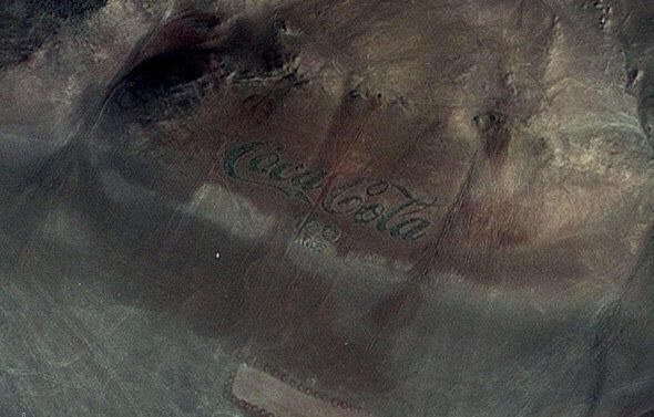 Logo Coca-Cola je vyrobeno ze starých lahví. soda a nachází se na svahu v Chile