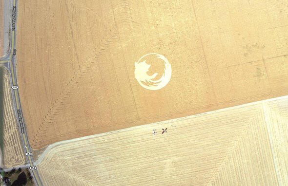Obří kruh na hřišti v podobě loga Firefoxu v Oregon