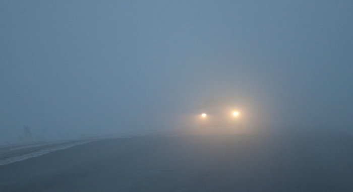 Na betonu bylo další nepříjemné překvapení: soused vyšel světlo (vyhořelo relé). V takové husté mlze se vzdáleným osvětlením bylo naprosto zbytečné jít – před námi stála pevná stěna světla, proč nevidět silnici přes dva metry. Začali poskytovat: strávit noc zde, čekat na úsvit, nebo si cestu vpřed „dotykem“. Přesto jsme se rozhodli pomalu jít, protože cesta byla pro Pavla přítel, ale v tuto chvíli na něm nejsou žádná auta.