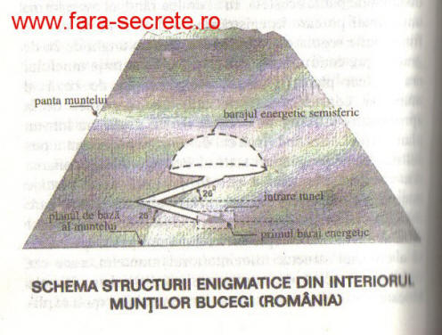 USA rychle sledují rumunské akce prostřednictvím NATO [potvrzeno] a Vatikán dal nějaké rumunské vládě velmi důležité dokumenty související s minulostí země. Geodetické satelitní skenování Pentagonu odhalilo dva hlavní energetické bariéry. Překrývající se omezený přístup pomocí pomocí umělé energie: první byl vyroben ve formě zdi, který zablokoval přístup do tunelu. Druhý byl obrovský jako kupole nebo polokoule, na opačném konci tunelu, nedaleko střed hory. Celý tunel polokoule byl umístěn v rovině rovnoběžně se zemí a překrývající se vertikální polokouli odpovídal skalám na hřebeni zvaném “Baba”.