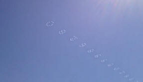 Numerický kód z mraků na obloze nad městem Auckland. Kalifornie, USA 9. 12. 2012 Pět synchronizovaných letadel vybavený maticovou technologií skywrite přinesl prvních 1000 Pi je nekonečná pořadová čísla na 10 000 stop. Letadlo se točilo kolem oblasti zálivu a každá místnost byla víc čtvrt míle vysoko.