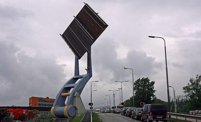 Říká se tomu „létající most“ a tento zázrak se nachází v Leeuwarden (Nizozemsko). Proč byl most vyroben? V Nizozemsku velmi intenzivní přeprava, ve které je podobný most jednoduše nelze vyměnit. Hydraulicky desetkrát denně stoupá a padá.