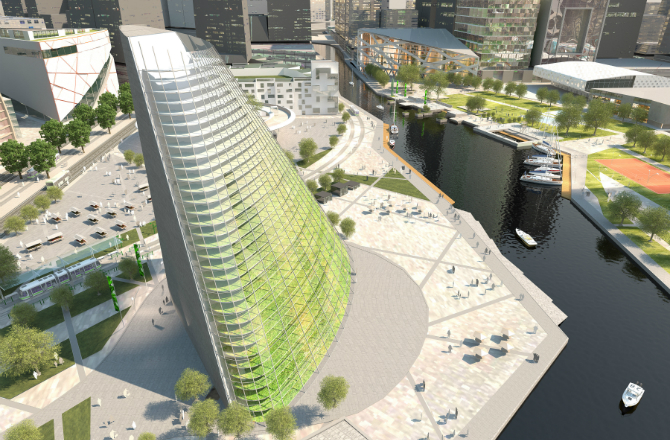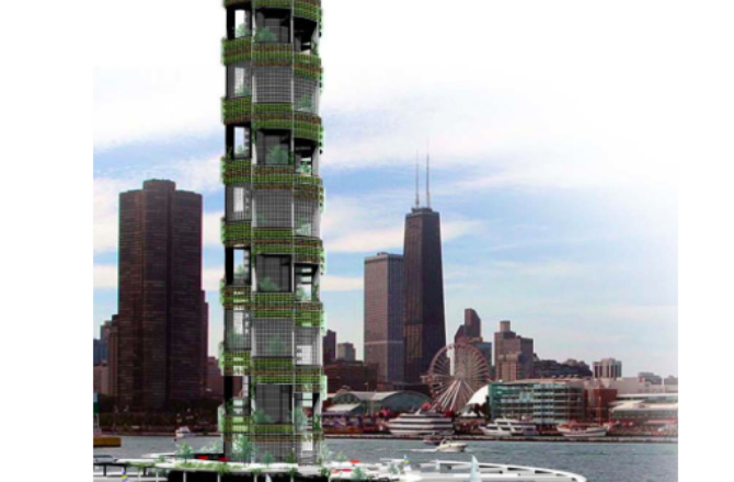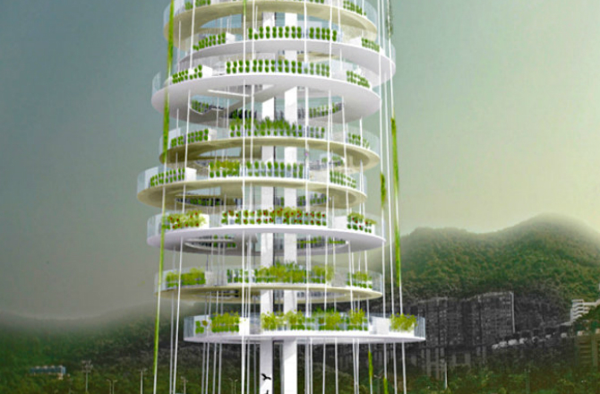 Foto z otevřených zdrojů Spiral This vertical farma ve formě vířící spirály sestupující do budovy bude mají výšku větší než 85 m. Spirála je navržena tak, aby po dobu několika měsíců se plodiny setí a poté shromáždili se ve spodní části struktury.