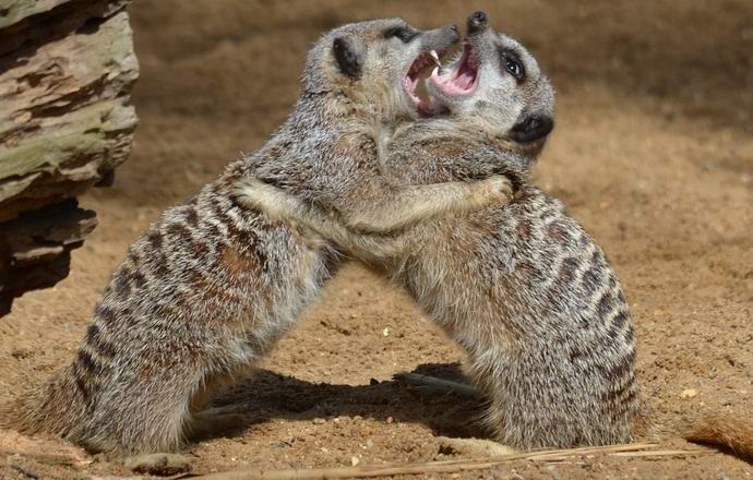 I když jsou to dravá zvířata, kanibalismus není běžné. Surikaty se navzájem zabíjejí při sdílení území a jídlo, v období páření kvůli boji o ženy, a také během neustálých potyček, proč jsou vědci stále nedokážu to vysvětlit. Možná šelmy prostě chtěli zabít navzájem. Mimochodem, mezi ženskými surikaty je ničení rozšířené mimozemské mláďata, aby si vyčistili místo pro své vlastní.