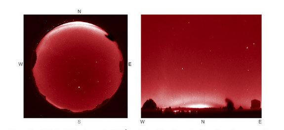 Když proudí vysoká energie, nabíjí se nabité částice Země po sluneční erupci způsobují tzv geomagnetické bouře. Tyto události jsou poruchy magnetosféry, části zemské atmosféry, kde dominuje magnetické pole planety. Nejdramatičtější důsledky těchto obřích bouří jsou živé aurory v odpovídajících oblastech Země. Ale výsledek bouře vyjádřeno v dalších úžasných důsledcích, například slabě světelný červený oblouk vysoko v ionosféře. Je to elektricky nabité části zemské atmosféry sahající od 50 do 370 mil (od 85 do 600 km) nad Zemí. Oblouky vyzařují velmi specifické vlnové délky červeného světla, ale jsou příliš slabé na to, aby byly bylo vidět pouhým okem. Objevují se níže zeměpisné šířky, na rozdíl od auror, které jsou obvykle pozorovány v vyšší zeměpisné šířky. Vědci si zpočátku mysleli, že je příliš velká Světelné znečištění v Evropě ztěžuje vidět matně červený oblouk. Nyní se však na severu nachází nová observatoř (ASIAGO) Itálie používá fotoaparáty s vysoce citlivými senzory a rybí oko čočky pozorovat tyto červené oblouky a slabě polární záře na většině kontinentu.