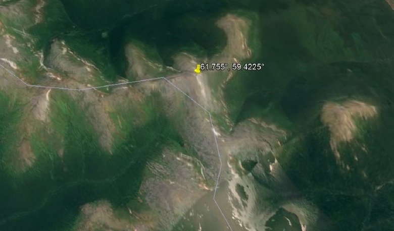 A tady jste – je to téměř na samém vrcholu hory Kholatchahl, na úbočí kterého zemřela skupina Dyatlov, z východu jeho strana spočívá na UFO ve tvaru disku (souřadnice – 61 ° 45,687 ‘severní šířky, 59 ° 25,724 ‘v). Loď je relativně velká, nejméně 20 metrů in průměr a výška asi 10 metrů. Navíc „létající talíř“, Zjevně tu přistál docela úhledně, protože vážné poškození není zaznamenáno.