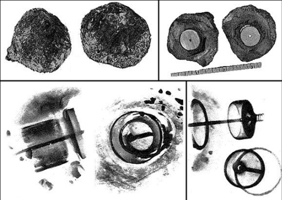 Jediným známým badatelem artefaktů byl vědec Ron. Kalais. Bylo mu dovoleno fotografovat fosílie obvyklým způsobem osvětlení a pod rentgenem. Ukázali to uvnitř zaoblené koule je kovová tyč, která spočívá na malém prameni. A to vše se podobalo jisté elektrické zařízení. Jak se však mohl dostat do vrstvy plemene doby doba kamenná?