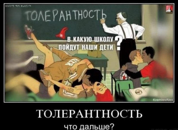 Foto z otevřených zdrojů Nejmódnější slovo naší doby je “tolerance”. „Musíte být vůči sobě tolerantnější,“ říkají intelektuálové a liberálové. “Musíme se navzájem respektovat,” – oslnit novinové titulky. „Všichni jsme lidé,“ slyší se z televizních obrazovek. A na první pohled se to zdá být. Ale pojďme na to co je tolerance. Pokud se podíváte do jakéhokoli slovníku nebo zadejte toto slovo do vyhledávače a potom jeden z významů bude následující: „Tolerance je neschopnost těla rozlišit cizí orgány. Tento stav je dosahován postupně inhibice toxických látek imunitního systému těla, vedoucí ji k apatii a lhostejnosti. Plná tolerance je smrt. “ Možná je tu opravdu něco na co myslet. Jedna věc respektovat vzájemný světonázor a druhým je vykořenit začátky laskavého a jasného potěšení nemocné společnosti, ikony které místo oblečení oblékaly na kousky masa, vystavovaly zpochybnil samotnou definici „Homo sapiens“. Rozhlížel se kolem můžete vidět, jak jsou lidé záměrně infikováni strašidelnými informacemi vředy a hlavními nástroji jsou lži, nemorálnost a nahrazení konceptů, které nasycily mnoho prostředků hromadná média. Tyto zlozvyky jsou postaveny v moderní společnosti v roce 2005 princip normy, a když je hniloba příliš zřejmá, pak toto, Bohužel již nezpůsobuje rozhořčení v minulosti. Představte si vás viděli na svých lehkých šatech inkoustovou skvrnu. Rozumíš tomu tato skvrna zkazí vaši věc a samozřejmě ji chcete opravit a podnikněte nějakou akci. Ale aby nedošlo ke ztrátě úsilí odstranění skvrn, rozhodnete se pouze skvrnit a zničit celek oblečení, díky čemuž byla barva té špinavé skvrny. Totéž děje se společností. Místo odstranění krbu znečištění, vidíme, jak je vše ostatní špinavé a slyšíme volání zacházejte s tím s úctou a tolerancí, což nás nakonec vede kompletní sociální apatie a lhostejnost.
