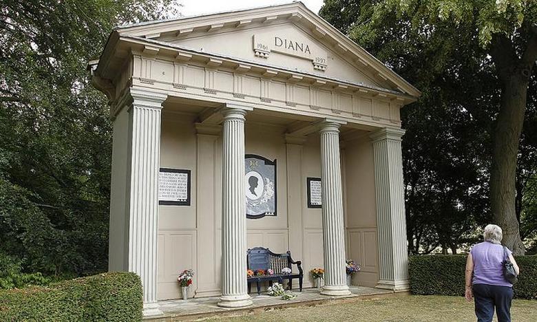 Stačí to říct na místo předpokládaného odpočinku Diany, to znamená, k plotu Kensingtonského paláce v Londýně přicházejí tisíce její fanoušci, přinášející květiny „lidové princezny“, portréty, svíčky, hračky, čtení poezie a dokonce jí věnování písní. Její popel však spočívá na jiném místě, tichém a odlehlém – v jejím panství rodiče Elthorpe, v hrobce na Northamptonshire stojící uprostřed obrovského rybníka. To platí pro fanoušky na panství byl postaven speciální památník “Diana” – nádherný architektonický stavby ve stylu klasicismu. Vstup zde zdaleka není zdarma …